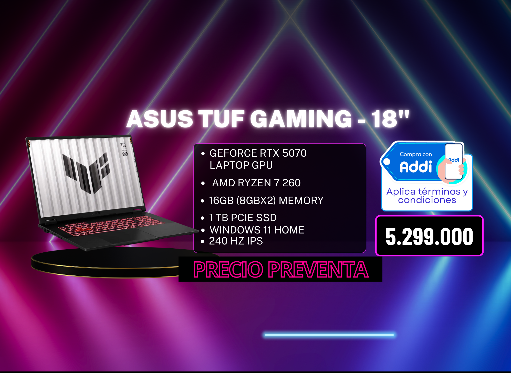TARJETA DE VÍDEO ASUS TUF GAMING GEFORCE RTX 5070 TI OC GDDR7 16GB