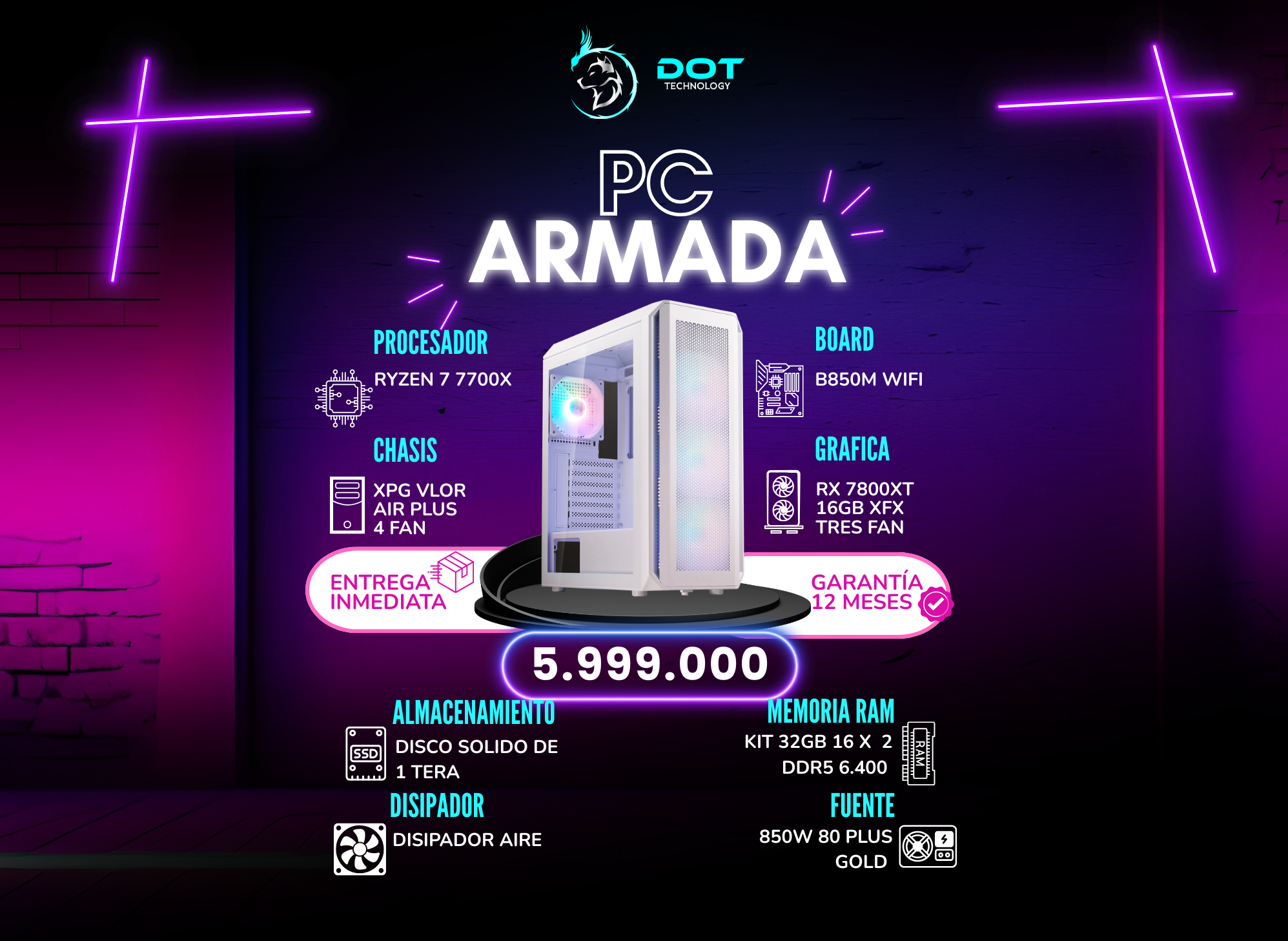 En DOT Technology, nos especializamos en ofrecer soluciones tecnológicas de última generación para entusiastas del gaming, profesionales de la tecnología y quienes buscan mejorar su experiencia digital. Con una amplia gama de productos de alta calidad, desde computadoras de alto rendimiento, componentes avanzados, hasta accesorios y periféricos, estamos comprometidos en proporcionar productos innovadores y de confianza.
