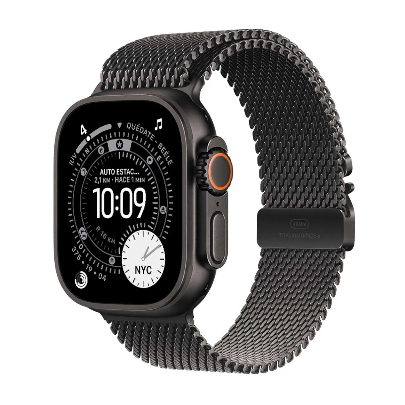 • Pantalla: Retina OLED LTPO3 de 49 mm con un brillo máximo de 3,000 nits y mínimo de 1 nit. Ofrece un ángulo de visión más amplio y tecnología de bajo consumo.