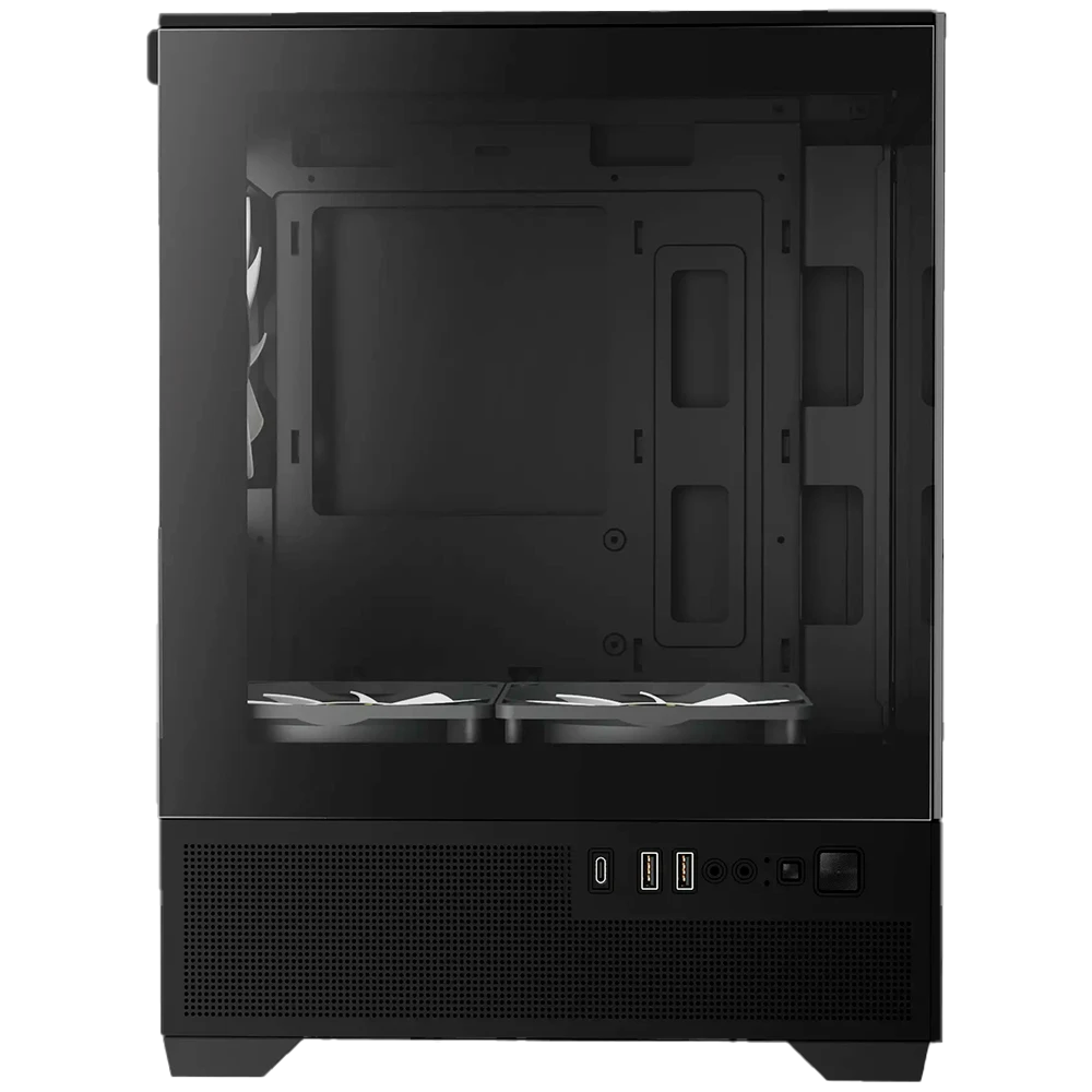 • Ventiladores Preinstalados: Incluye 3 ventiladores ARGB de 120 mm (2 en la parte inferior de tipo «reverse» y 1 en la parte trasera).