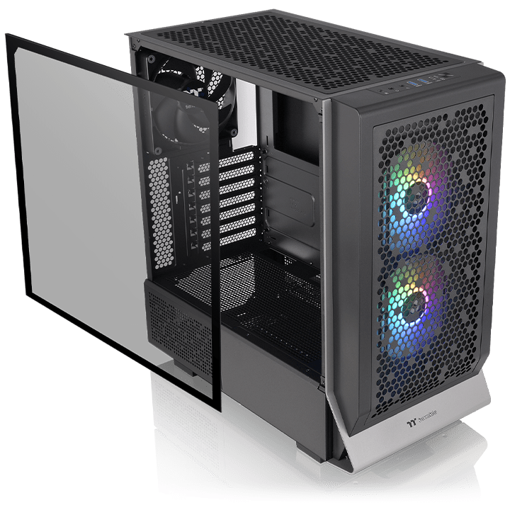 La Thermaltake Ceres 300 TG ARGB Black es una caja tipo semi-torre (Mid Tower) diseñada para maximizar el flujo de aire, con más del 55% de sus paneles perforados y soporte para configuraciones de gama alta.