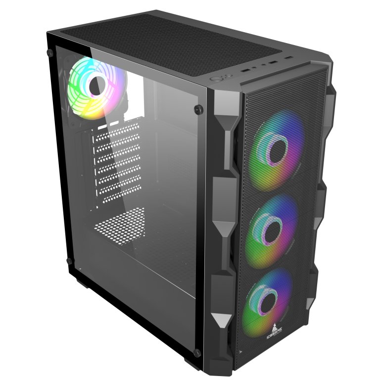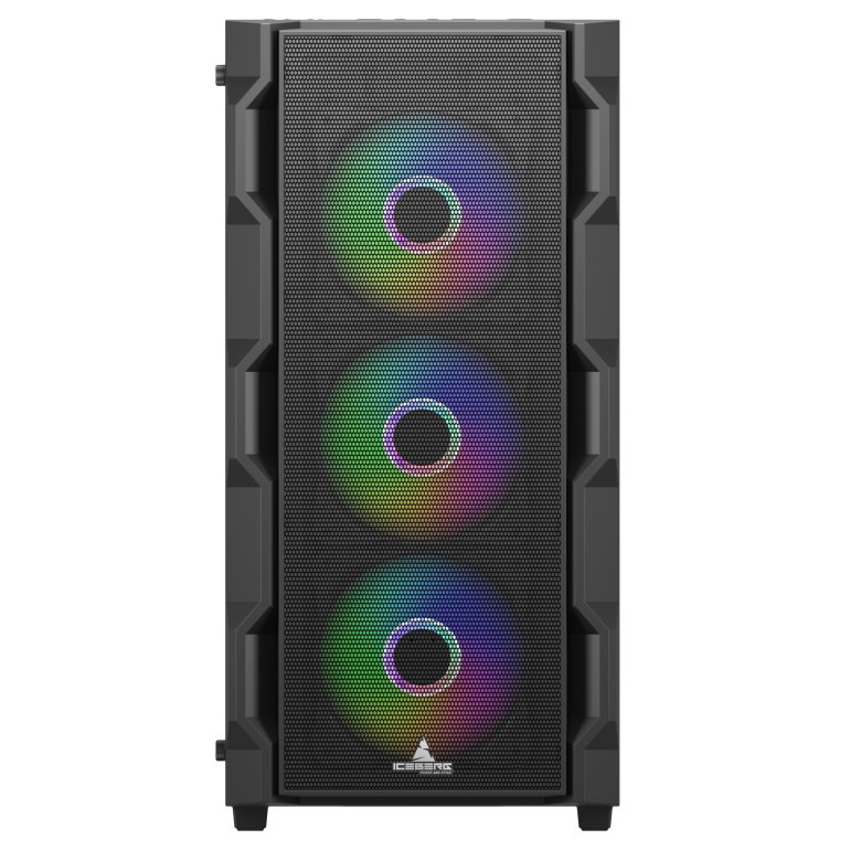 El Iceberg Titan M4 es un chasis de torre media con diseño moderno y panel lateral de vidrio templado. Incluye 6 ventiladores ARGB que ofrecen excelente ventilación y estética. Es compatible con placas EATX y tarjetas gráficas de hasta 380 mm. Soporta refrigeración líquida con radiadores de hasta 360 mm. Ideal para builds potentes con buena organización interna y flujo de aire.