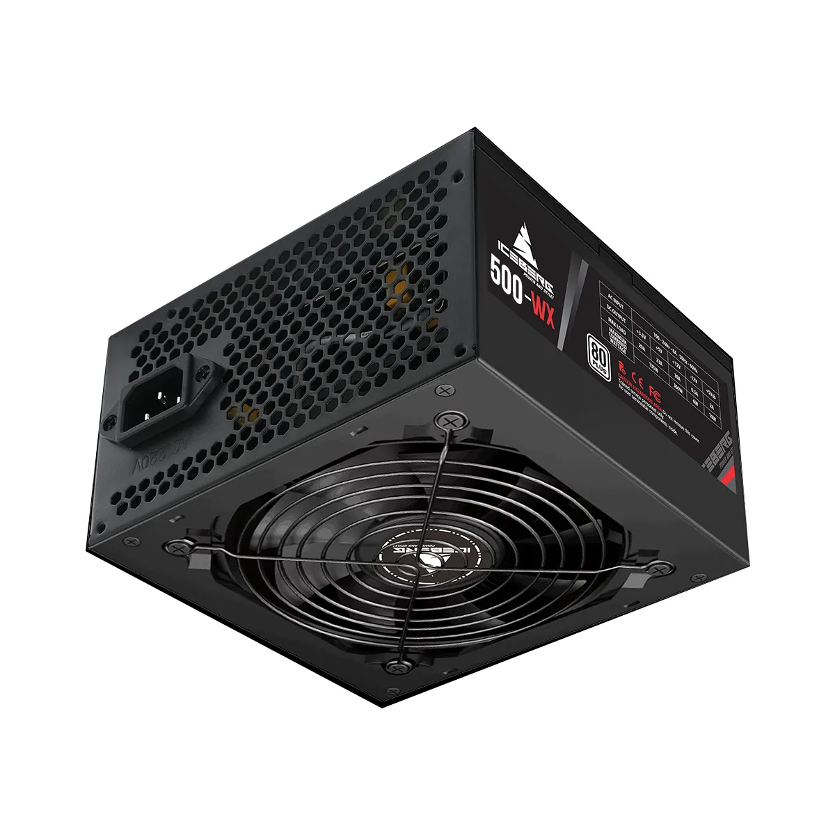 La fuente de poder Iceberg 500-WX es una unidad de 500W reales con certificación 80 Plus White, diseñada para PCs de gama de entrada o multimedia.