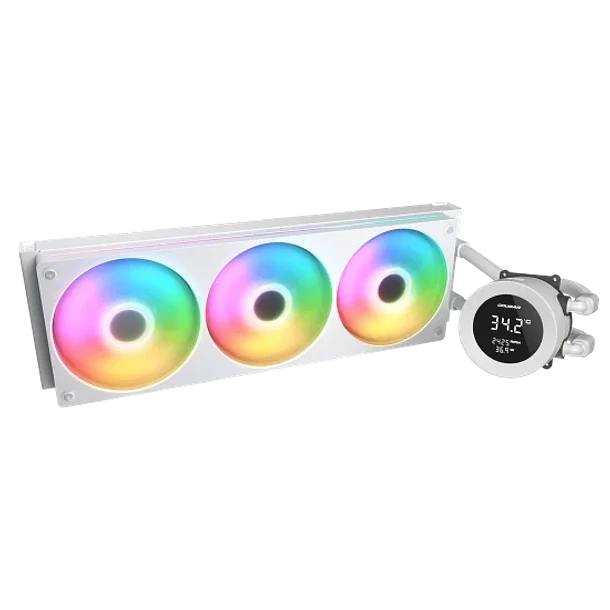 La refrigeración líquida Cougar Poseidon Vistek ARGB 360 White es un sistema AIO de alto rendimiento diseñado en color blanco con una pantalla LCD integrada en el bloque de agua para monitoreo o personalización visual. Cuenta con un radiador de 360 mm, tres ventiladores ARGB de alta eficiencia y compatibilidad con sockets modernos Intel/AMD.