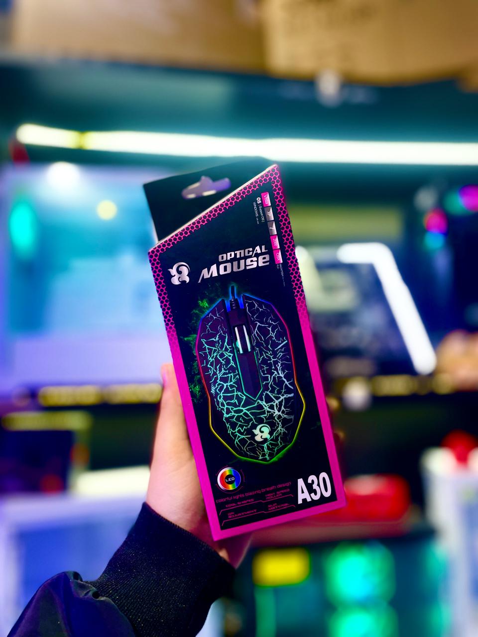 El mouse óptico gamer A30 es un periférico alámbrico USB diseñado para alta precisión y comodidad, con una resolución típica de hasta 2400 DPI, iluminación LED/RGB, 3 botones con scroll, y un diseño ergonómico ideal para juegos y trabajo. Cuenta con cable (aprox. 1.1m a 1.5m), materiales ABS+PC y es plug-and-play, compatible con la mayoría de sistemas operativos.