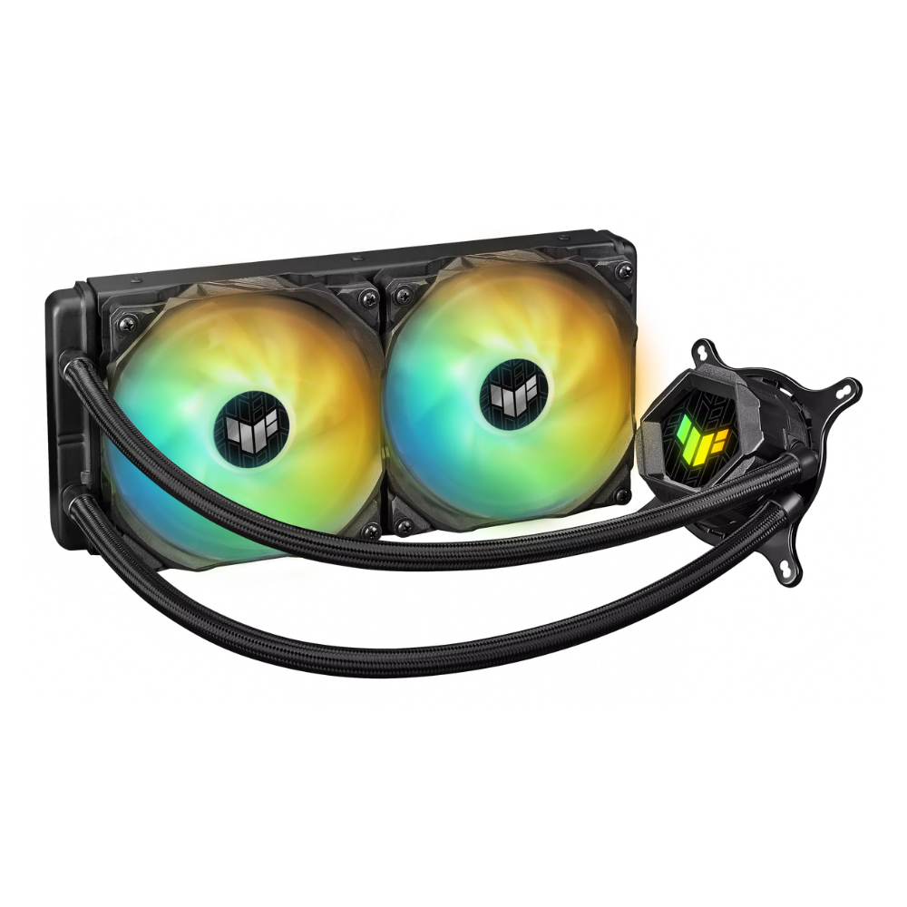 La refrigeración líquida ASUS TUF Gaming LC 240 ARGB es un sistema AIO de 240 mm diseñado para alto rendimiento y durabilidad, ideal para procesadores Intel y AMD. Cuenta con ventiladores de 120 mm optimizados, iluminación ARGB personalizable con Aura Sync, tubos reforzados de 38-40 cm y placa de cobre para una eficiente disipación.