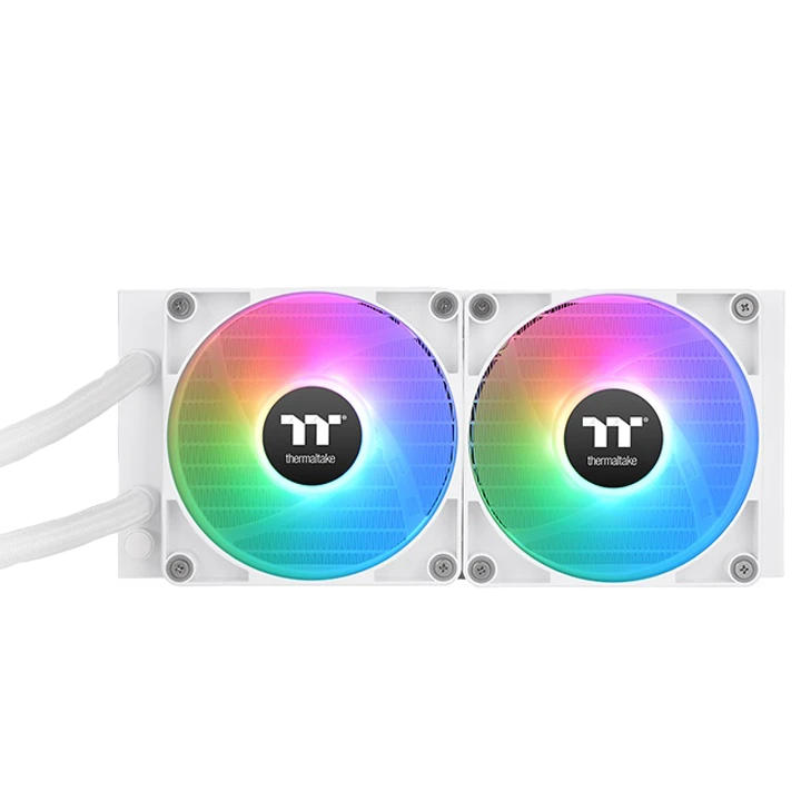 El Thermaltake TH240 V2 ARGB Sync All-in-One Liquid Cooler Snow Edition es un sistema de refrigeración líquida todo en uno (AIO) diseñado para ofrecer enfriamiento eficiente, operación silenciosa y estética avanzada con iluminación ARGB sincronizable. Esta versión Snow Edition destaca por su acabado blanco que aporta un look moderno y limpio a cualquier gabinete, ideal para configuraciones gaming, estaciones de trabajo y rigs de alto rendimiento. Su radiador de 240 mm y ventiladores optimizados permiten una disipación térmica superior frente a soluciones de aire tradicionales, lo que ayuda a mantener temperaturas estables incluso bajo cargas intensas. El bloque de agua cuenta con cámara optimizada y bomba de alto flujo, entregando eficiencia térmica y operación confiable de forma continua.