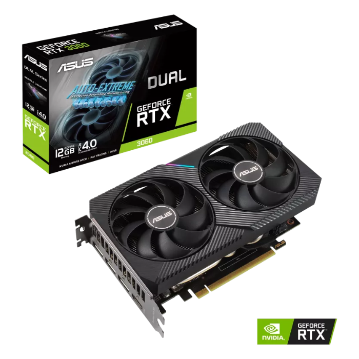 La ASUS Dual GeForce RTX 3060 12GB es una potente tarjeta gráfica de gama media-alta ideal para juegos a 1080p y 1440p con altos niveles de detalle. Con sus 12 GB de memoria GDDR6, buen rendimiento en Ray Tracing y soporte para DLSS, ofrece fluidez y calidad visual en títulos modernos. Su diseño de doble ventilador y construcción robusta garantizan buena refrigeración y durabilidad. Perfecta para quienes buscan potencia sin irse a la gama más alta.