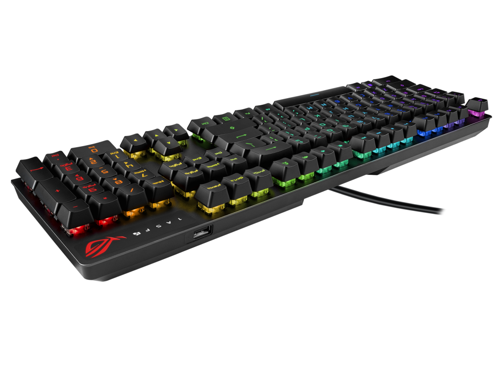 Teclado óptico para juegos ROG Strix Scope RX RGB para jugadores de FPS, con interruptores mecánicos ópticos ROG RX, iluminación Aura Sync RGB integral, resistencia al agua y al polvo IP57, paso a través de USB 2.0 y placa superior de aleación.