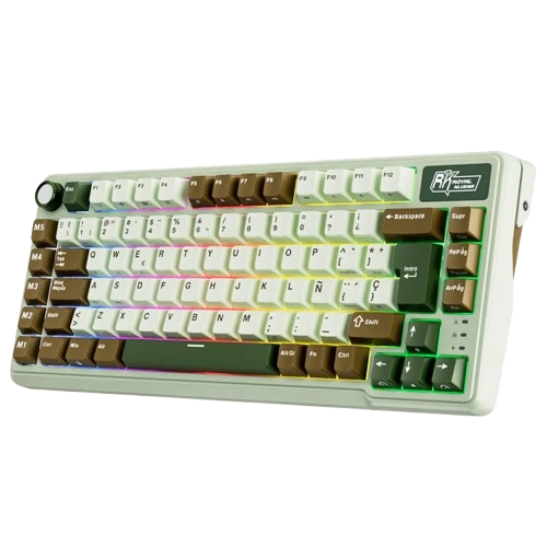 El Royal Kludge RKL75 RGB 75% Moca Grey es un teclado mecánico inalámbrico que destaca por su diseño compacto y elegante, ideal para quienes buscan eficiencia y estilo en un solo dispositivo.