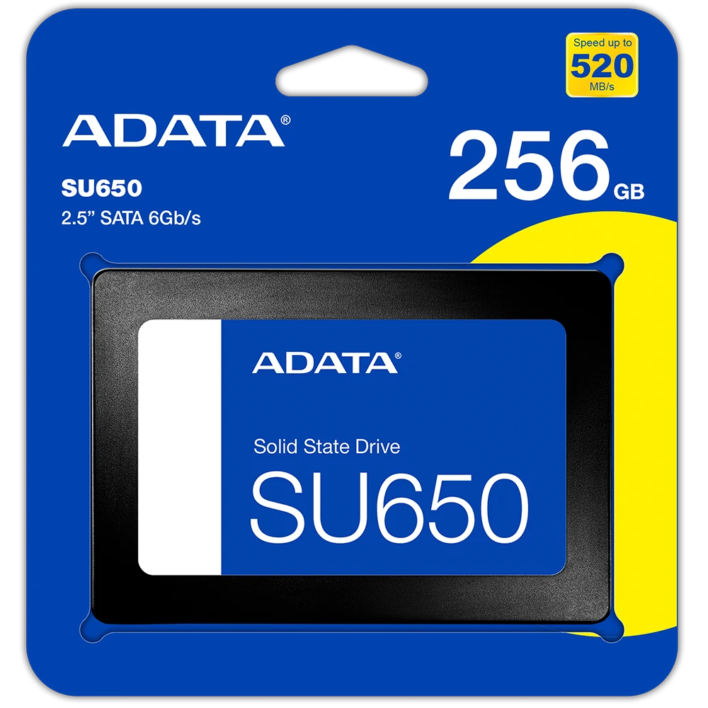 La ADATA Ultimate SU650 de 256GB es una unidad de estado sólido (SSD) de 2.5 pulgadas que utiliza tecnología 3D NAND y una interfaz SATA III, diseñada para mejorar la velocidad de arranque y transferencia en comparación con los discos duros tradicionales.