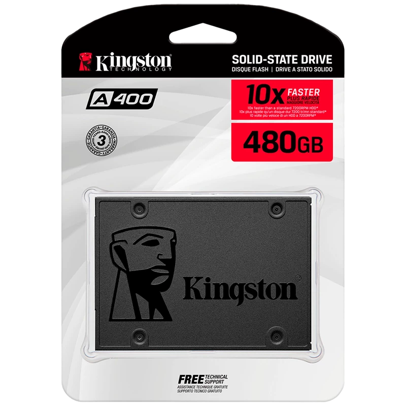 La unidad de estado sólido Kingston A400 SSD de 480GB es un dispositivo de almacenamiento de gama de entrada diseñado para mejorar el rendimiento de computadoras de escritorio y portátiles al ser hasta 10 veces más rápido que un disco duro convencional.