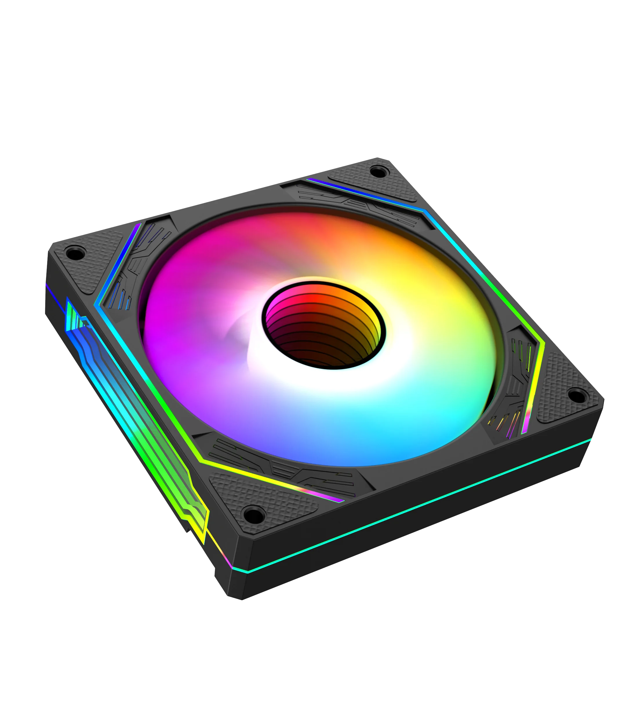 El ventilador para PC Iceberg Maxi Infinity es una solución de refrigeración de 120 mm diseñada para gabinetes gamer, destacando por su iluminación ARGB con efecto espejo infinito en el centro y borde.